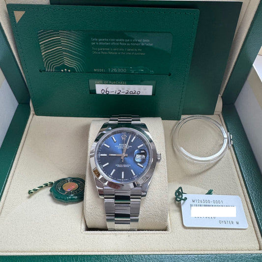 2020 Rolex Datejust 41 Stainless Steel Blue Index Dial Oyster Bracelet Smooth Bezel 126300