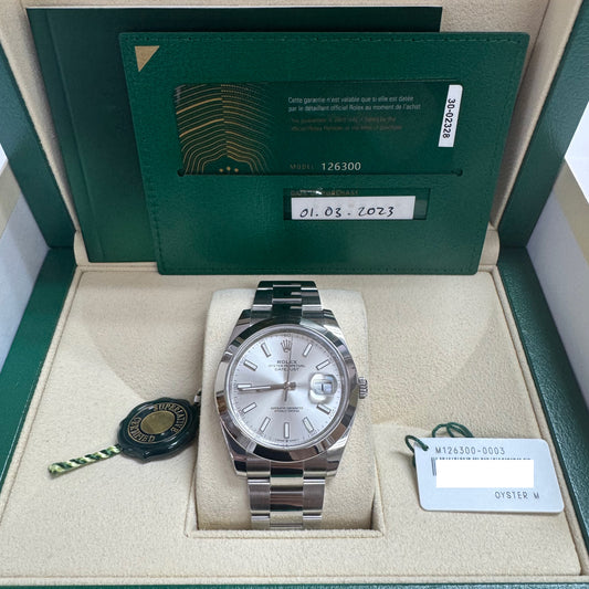 2023 Rolex Datejust 41 Stainless Steel Silver Dial Oyster Bracelet Smooth Bezel 126300