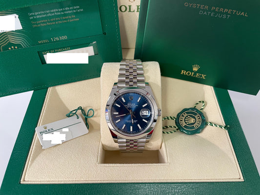 2024 Rolex Datejust 41 Stainless Steel Blue Index Dial Jubilee Bracelet Smooth Bezel 126300