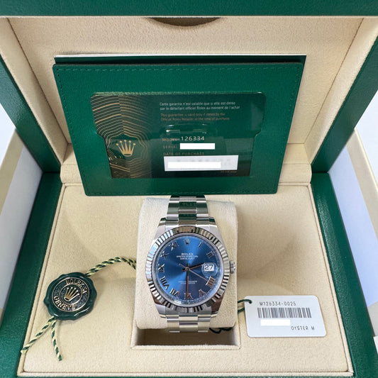 2024 Rolex Datejust 41 Stainless Steel & 18K White Gold Blue Roman Dial Oyster Bracelet Fluted Bezel 126334