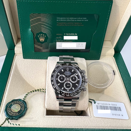2022 Rolex Cosmograph Daytona Stainless Steel Black Dial Oyster Bracelet Ceramic Bezel 116500LN