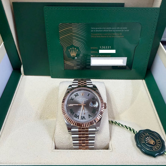2024 Rolex Datejust 41 Stainless Steel & 18K Everose Gold Slate (Wimbledon) Dial Jubilee Bracelet Fluted Bezel 126331