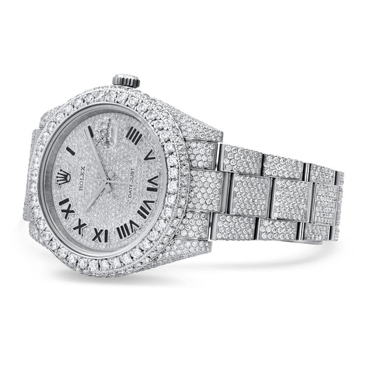Rolex Datejust 41 IcedOut Custom Aftermarket Diamond-Set Stainless Steel Diamond Dial Oyster Bracelet Diamond Bezel 126300