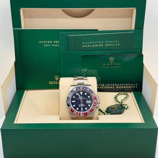 2025 Rolex GMT Master II 40mm Stainless Steel Black Dial Blue/Red (Pepsi) Bezel Oyster Bracelet 126710BLRO