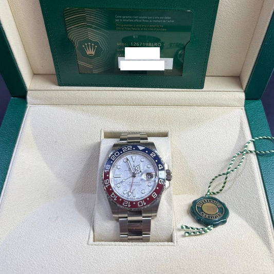 2025 Rolex GMT Master II 40mm 18K White Gold Meteorite Dial Blue/Red (Pepsi) Bezel Oyster Bracelet 126719BLRO