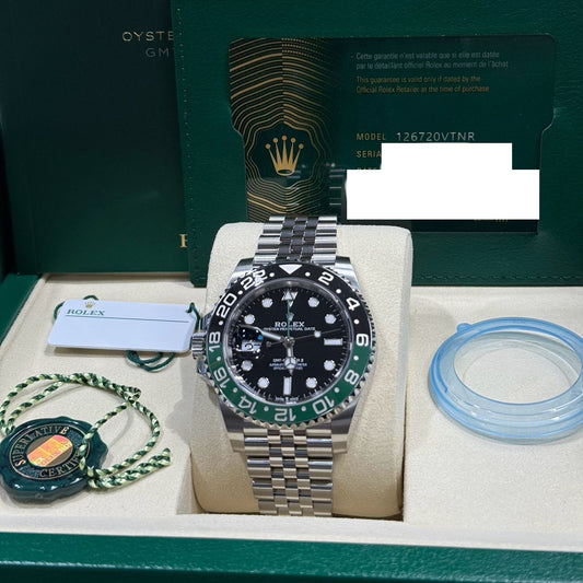 2025 Rolex GMT Master II 40mm (Lefty) Stainless Steel Black Dial Black/Green (Sprite) Bezel Oyster Bracelet 126720VTNR