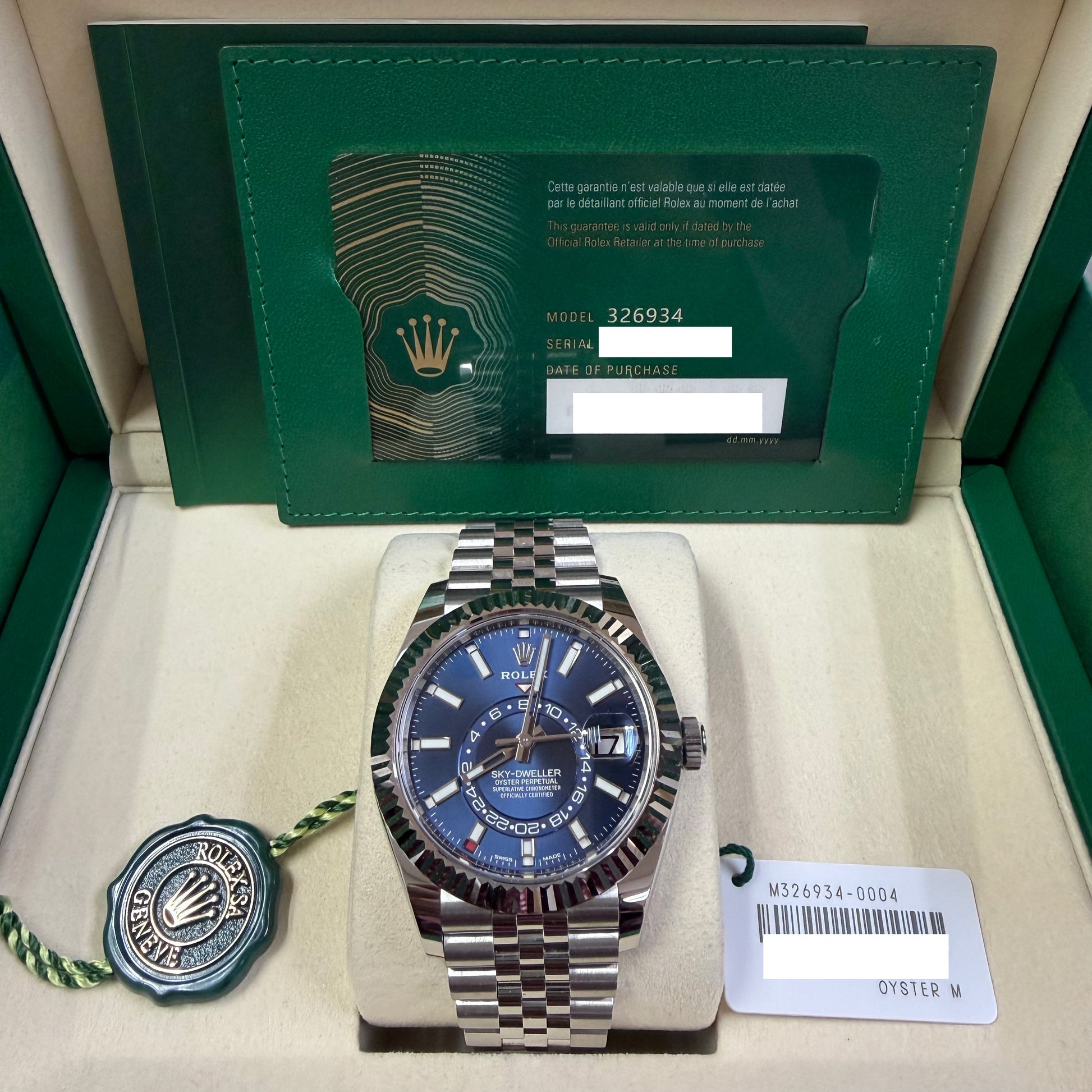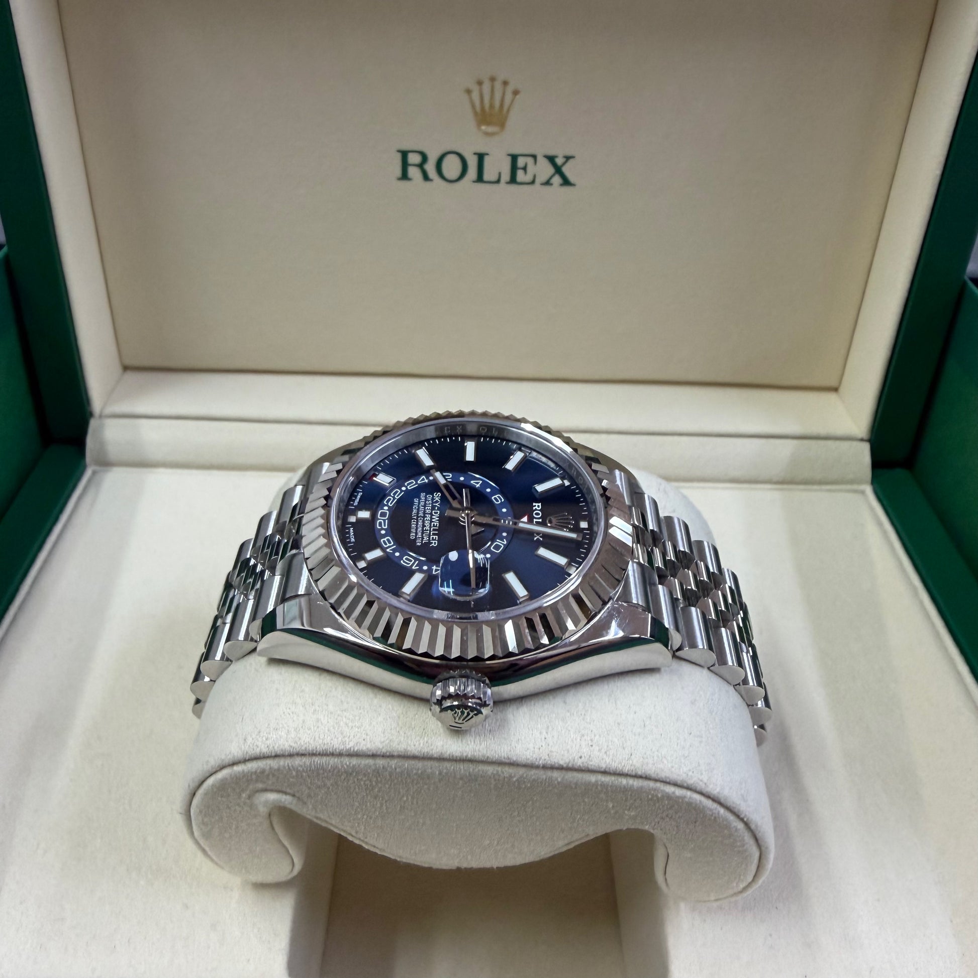 2022 Rolex Sky Dweller Stainless Steel & 18K White Gold Blue Dial Jubilee Bracelet 326934