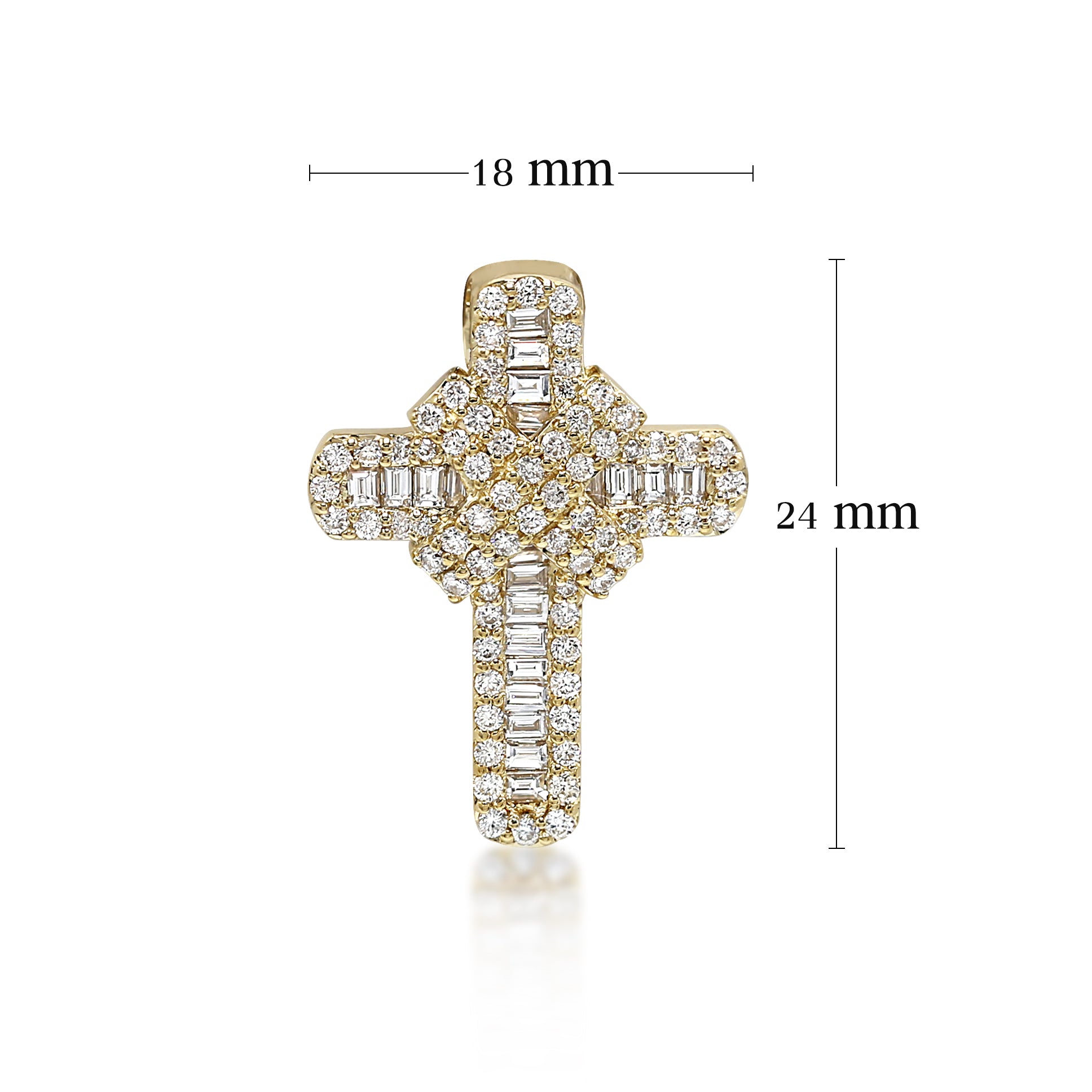 Natural Baguette Diamond Cross Pendant in Gold
